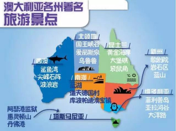 澳大利亚各州着名旅游景点: