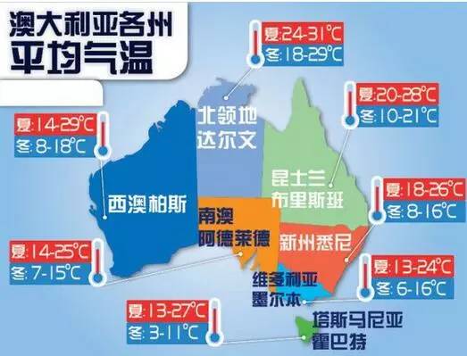 澳大利亚各州平均温度: