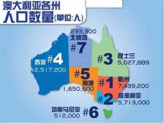澳大利亚各州人口数量: