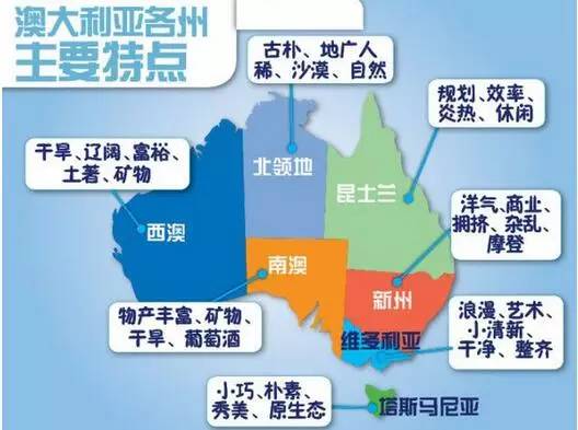 澳大利亚各州主要特点: