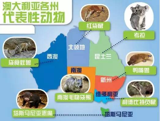 澳大利[亚各州代表动物: