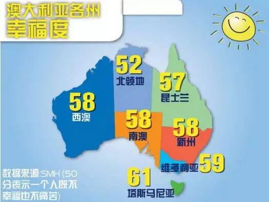 澳大利亚各州幸福度: