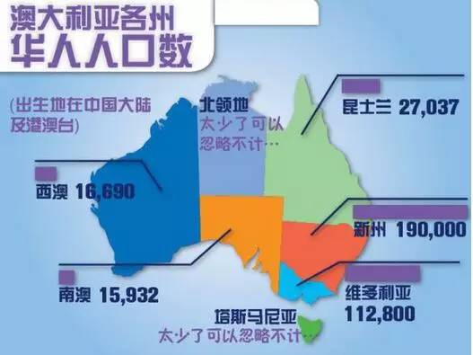 澳大利亚各州华人人口数: