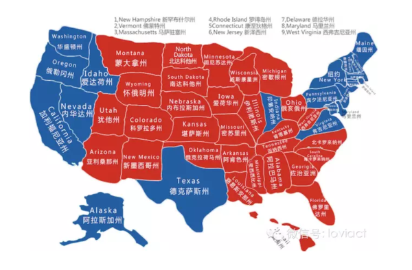 如果以占有率50%为分界线,ACT攻克30州,SAT攻克20州。首都华盛顿,ACT占有率42%,SAT占有率58%,SAT蓝军占上风,但ACT已有赶超SAT的趋势。