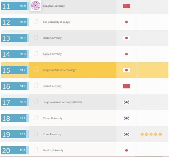 51due论文代写平台了解,在此次排名中,新加坡国立大学继续蝉联第一名。而大陆共有25所大学进入排行榜前100名并且大部分学校的排名都有上升。排名最高的北京大学从去年的第八位上升到第七位。而清华大学排名从第十四位上升到了第十一位。统计发现,总计110所中国大学进入亚洲大学300强,再创历史新高。