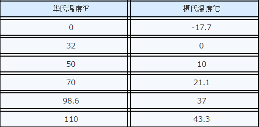 美国温度单位换算
