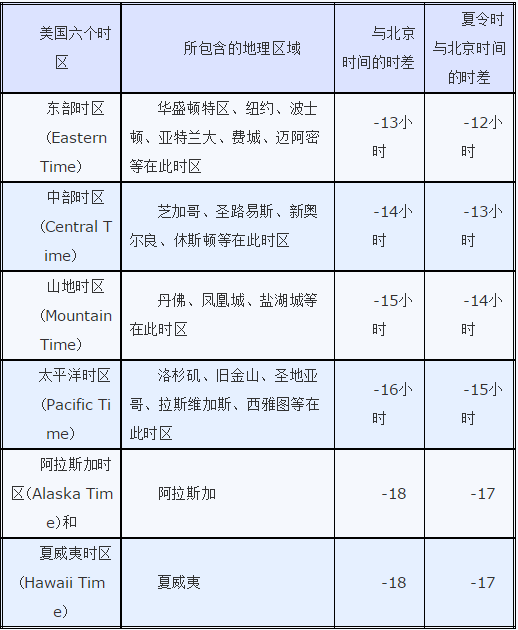 关于美国时间单位怎么换算,在国内,无论我们在任何一个方位,都不必担心时间是否会不一致,因为我国均以北京时间做为所有人的作息标准。而美国的时区则比较复杂了,共有六个时区,其中本土四个时区,另含阿拉斯加时区(Alaska Time)和夏威夷时区(Hawaii Time)。而且,美国的时间还分夏令时(Day Time)和标准时(Standard Time),美国夏令时始于每年4月的第1个周日,止于每年10月的最后一个周日。夏令时比正常时间早一小时。大致的时区划分请见下表: